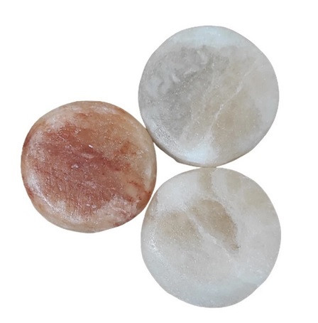 صابون های سنگ نمک در شکل های مستطیلی و دایره ای. مناسب دکور . ماساژ روی پوست و استفاده در حمام می باشند که بسیار برای پوست مفید هستند. باعث لایه برداری پوست می شوند و ضد جوش می باشد.