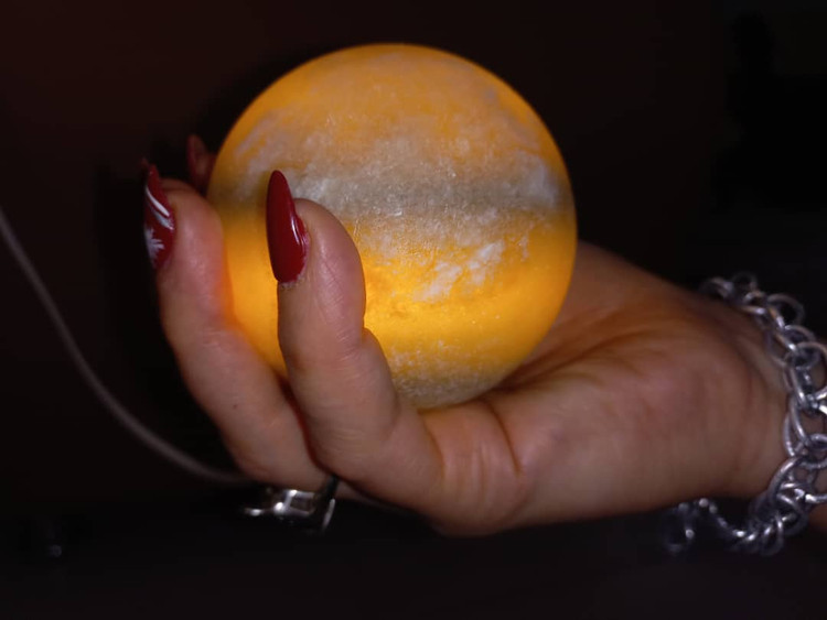 گوی سنگ نمک قطر 8 سانتی متر. این گوی های سنگ نمک مناسب برای دکور و ماساژ بخصوص ماساژ کمر می باشند.. این گوی ها از سنگ نمک طبیعی ساخته شده اند که کاملا صیقلی می باشند. رنگ های گوی ها بسیار متنوع می باشد. رنگ سنگ نمک با توجه به عناصر موجود در آن می تواند سفید،کرم ، نارنجی کمرنگ. نارنجی پر رنگ، آجری ، قرمز، بژ، صورتی، طوسی و بسیاری از رنگ های دیگر باشد. به طور کلی محصولات سنگ نمک یک دست نیست و معمولا رگه های رنگی در این گوی ها و هر محصول دیگر سنگ نمک مشاهده میشود که بر زیبایی این گوی ها می افزاید . در صورت کسب اطلاعات بیشتر با شماره 09397472317 تماس بگیرید .