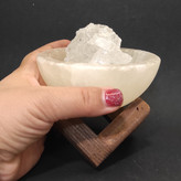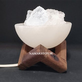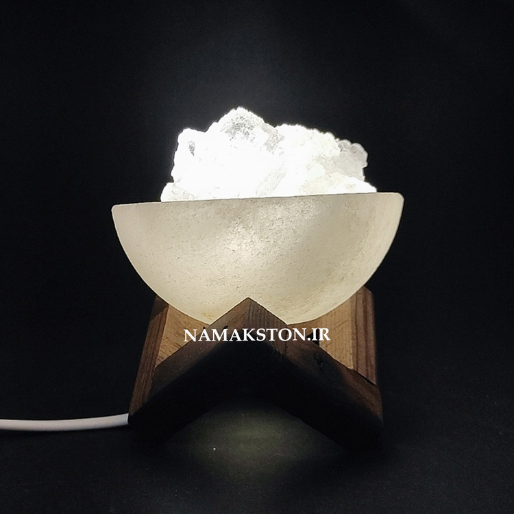 آبازور سنگ نمک طرح کاسه. این محصول شامل یه کاسه با قطر 8 سانت و پایه چوبی و کابل و لامپ ال ای دی می باشد.داخل کاسه کریستال های دلنمک قراردارد که البته با توجه به سلیقه میتوان با گوی کوچک یا مکعب های رنگی جایگزین شود .